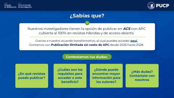 Nuestros investigadores tienen la opción de publicar en ACS con APC cubierta al 100% en revistas híbridas y de acceso abierto.