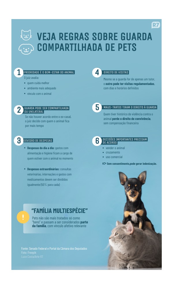 - Despesas do dia a dia: gastos com alimentação e higiene ficam a cargo de quem estiver com o animal no momento