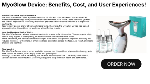 Introduction to the MyoGlow Device The MyoGlow Device offers a powerful solution for modern skincare needs. It uses advanced microcurrent technology to improve skin tone and firmness. As a result, users achieve a youthful and radiant appearance. Moreover, this device provides a non-invasive alternative to expensive treatments. Today, many people prefer at-home skincare tools. Therefore, the MyoGlow Device has gained strong attention. It combines convenience with effective results. How the MyoGlow Device Works The MyoGlow Device delivers low-level electrical currents to facial muscles. These currents mimic natural body signals. Consequently, muscles contract and become more toned. At the same time, the device stimulates collagen production. This process improves elasticity and reduces wrinkles. Furthermore, it enhances blood circulation across the face. As a result, skin looks brighter and healthier. Final Verdict The MyoGlow Device stands out as a reliable skincare tool. It combines advanced technology with ease of use. As a result, users enjoy firmer and glowing skin. Although consistent use is necessary, the benefits remain impressive. Therefore, it becomes a valuable addition to any routine. Moreover, it supports long-term skin health and confidence.