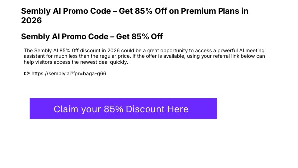 The Sembly AI 85% Off discount in 2026 could be a great opportunity to access a powerful AI meeting assistant for much less than the regular price. If the offer is available, using your referral link below can help visitors access the newest deal quickly. 👉 https://sembly.ai?fpr=baga-g66