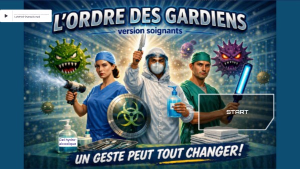 Dans les couloirs silencieux de l'hôpital, il existe un Ordre dont personne ne parle à voix haute.Un cercle de soignants choisis pour leur vigilance et leur précision.On l'appelle l'Ordre des gardiens. Depuis des années, ils veillent dans l'ombre, protégeant les patients d'un ennemi invisible: les infections associées aux soins. Mais aujourd'hui, quelque chose a rompu l'équilibre, une brèche s'est ouverte. L'Ordre des gardiens a besoin de vous et vous ont convoqué. Dans quelques instants, vous franchirez la porte, le seuil sacré ou chaque geste compte. A l'intérieur, vous devrez répondre correctement aux questions. Votre mission commence maintenant. Restez unis. restez lucides. Et souvenez vous: l'hygiène des mains n'est pas une règle. C'est un serment!