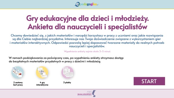 Gry edukacyjne dla dzieci i młodzieży. Ankieta dla nauczycieli i specjalistów